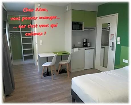 Atao Residence- Rennes Sud enjoys a location in Vern-sur-Seiche, 2.8 miles from La Poterie Metro Station, Rennes and 3.3 miles from Le Blosne Metro Station. Among the facilities at this property are an elevator and full-day security, along with free Wifi throughout the property. There's parking on-site and the property provides an electric vehicle charging station. The units come with parquet floors and feature a fully equipped kitchenette with a microwave, a dining area, a flat-screen TV, and a private bathroom with shower and free toiletries. A fridge, a stovetop, and kitchenware are also provided, as well as a coffee machine and a kettle. At the condo hotel, all units are equipped with bed linen and towels. Buffet and continental breakfast options with fresh pastries, fruit, and juice are available. There is a coffee shop, and a mini-market is also available. Guests can also relax on the sun terrace. Triangle Metro Station is 3.8 miles from the condo hotel, while Henri Fréville Metro Station is 4.7 miles away. Rennes–Saint-Jacques Airport is 7.5 miles from the property.