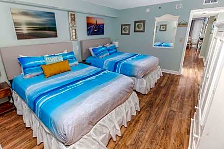 This oceanfront Myrtle Beach resort features a 150 ft. lazy river, an outdoor pool, and an indoor pool with a 10 ft. waterfall. It offers ocean view guest suites just 6 mi from Coastal Grand Mall. A kitchen and a living room with a sofa bed are furnished in each suite at Atlantica Resort. The traditionally styled rooms also offer a private terrace and free Wi-Fi. Resort Atlantica offers an on-site restaurant and a fitness center. Guest laundry facilities are also available. This resort is within 15 minutes’ drive of Myrtle Beach International Airport and River Oaks Golf Course. Captain Dick’s Marina is about 20 mi away.