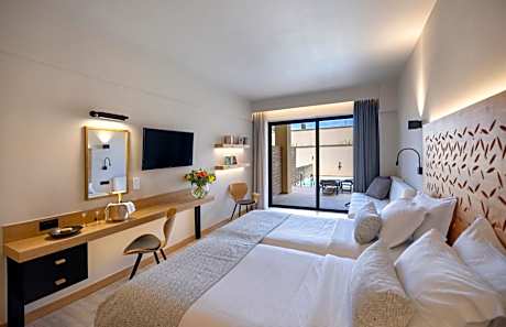 This 5-star Rethymnon Beach hotel has a Blue Flag sandy beach, equipped with loungers and parasols. Atlantis Beach Hotel offers rooms with balconies, large gardens and a 170-m² swimming pool. The air-conditioned rooms have free WiFi, LCD satellite TV with 25 foreign channels and 1 Greek news channel, and a fridge. Their balconies offer sea or pool view. All rooms overlook the beautiful hotel gardens. Knossos restaurant serves Greek and Cretan cuisine. The lobby bar serves drinks in a beautiful atmosphere with views of the sea. Both the beach and the pool areas are serviced by the lobby and pool bars. The hotel offers free sun beds and umbrellas around the pools. Relaxing facilities at the Atlantis include a fitness room and a sauna. It also features a children’s playground and a games room. Atlantis Beach Hotel is located on the sandy beach of Rethymno, 0.9 mi from the old town and the Venetian harbor. Private parking is available in hotel's garage with extra cost.