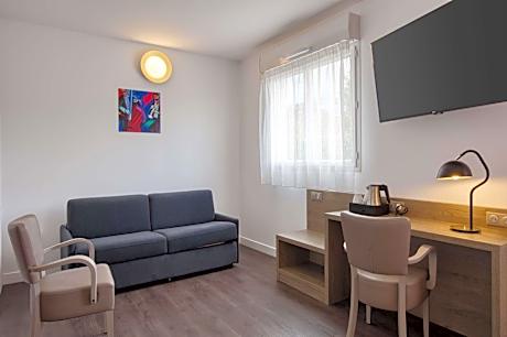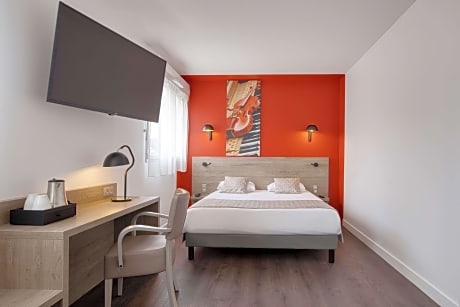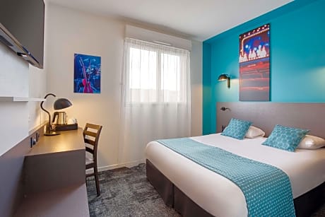 Located at Saint herblain, close to Nantes, the 3 stars hotel Atlantys is in the heart of a business park and is a 5-minute walk from the Zenith arena. Each room is equipped with a bathroom and toilet, free Wi-Fi access and a safe. There is a disabled access room. Next to the hotel, you will find a tramway that drives you up to the city center of Nantes. Free private parking is available on site.