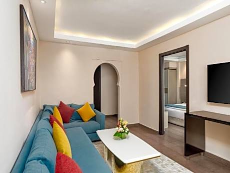 Located 0.6 mi from Agadir City Center, this hotel provides direct access to a sandy beach. It features 2 swimming pools, a piano bar and a spa offering beauty treatments. The air-conditioned guest rooms feature a traditional Moroccan décor and a view of the sea. All rooms are equipped with a flat-screen TV with satellite channels. Each room has a private bathroom. There are 2 restaurants at Amadil Ocean Club, 1 serving a buffet with regional cuisine. The other restaurant serves seafood and Italian specialties. Musical shows are arranged in the evenings after dinner. Additional facilities at hotel Amadil Ocean Club include a fitness center and a tour desk to organize trips to Marrakech. With free private parking on site, this hotel is 16 mi from Al Massira Airport. There are 3 golf courses, all within 3.1 mi of the hotel. All accommodations at the property can host a maximum of one Child (Child under 6 years old)