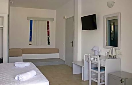 Featuring a garden and a terrace, Atlas Boutique Hotel is located in Kamari, a few steps from Kamari Beach and 2.3 miles from Ancient Thera. Featuring a seasonal outdoor swimming pool, the 3-star hotel has air-conditioned rooms with free WiFi, each with a private bathroom. Guests can have a drink at the snack bar. Guest rooms at the hotel are equipped with a flat-screen TV with satellite channels and a safety deposit box. All guest rooms will provide guests with a fridge. Speaking Greek and English, staff will be happy to provide guests with practical guidance on the area at the reception. Archaeological Museum of Thera is 5.2 miles from Atlas Boutique Hotel, while Santorini Port is 6.2 miles from the property. Santorini International Airport is 1.9 miles away, and the property offers a paid airport shuttle service.