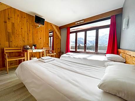 Located at the bottom of the ski hill and in the Deux Alpes Ski Resort, Atmosphere Hotel has an altitude of 5413 feet and offers ski to door access, a south-facing terrace and a bar. A TV is provided in each accommodations. Its rooms offer free WiFi access and most of them have a view of La Muzelle Mountains. The private bathrooms are fitted with a bath. The breakfast buffet is served each morning. Dinner comes with a starters buffet and 2 further courses served at the table. The bar overlooks the ski slopes. Ski rental is available near the hotel. Hiking and mountain biking activities can be found in the area during summer.