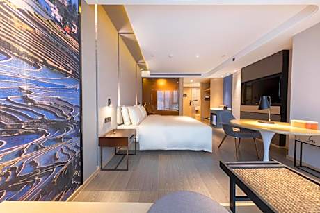 Experience an abundance of unparalleled facilities and features at Atour Hotel Kunming High-Tech Wuyue Plaza.Share your photos and respond to emails at your convenience, thanks to the free Wi-Fi internet access offered by hotel. Taxi offerings at the hotel enhance the ease of discovering Kunming. Visitors can take advantage of complimentary parking directly at the hotel.Reception services such as concierge service, express check-in or check-out and luggage storage are available to accommodate your requirements.Traveling with minimal baggage is achievable at Atour Hotel Kunming High-Tech Wuyue Plaza, as the hotel's laundromat and laundry service ensures your garments stay fresh. Each accommodation at Atour Hotel Kunming High-Tech Wuyue Plaza is thoughtfully created and adorned to provide visitors with a comfortable, home-like atmosphere. In certain rooms, the hotel offers linen service and air conditioning for guest convenience and satisfaction. In select rooms, guests can enjoy a touch of amusement with the availability of television for their entertainment.Rest assured, in a few chosen rooms, the presence of bottled water can be found. Maintain your cleanliness and comfort using a hair dryer and toiletries available in select guest restrooms. Embark on your holiday experience in the most ideal manner. Commence each morning of your visit with an on-site breakfast.Should you prefer not to venture out for a meal, the enticing culinary choices at hotel are always available for your satisfaction. Indulge in the numerous pursuits available at Atour Hotel Kunming High-Tech Wuyue Plaza. For individuals who don't want to skip their exercise routine, visiting the hotel fitness center ensures you maintain your vitality and wellness.
