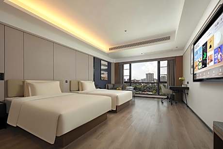 Experience an abundance of unparalleled facilities and features at Atour X Hotel Xishuangbanna Poshui Square.Share your photos and respond to emails at your convenience, thanks to the free Wi-Fi internet access offered by hotel. Visitors can take advantage of complimentary parking directly at the hotel. Reception services such as express check-in or check-out and luggage storage are available to accommodate your requirements.Each accommodation at Atour X Hotel Xishuangbanna Poshui Square is thoughtfully created and adorned to provide visitors with a comfortable, home-like atmosphere.In certain rooms, the hotel offers linen service, blackout curtains and air conditioning for guest convenience and satisfaction.At Atour X Hotel Xishuangbanna Poshui Square, the uniquely tailored rooms provide a configuration choice resembling a balcony or terrace.In select rooms, guests can enjoy a touch of amusement with the availability of television for their entertainment. Rest assured, in a few chosen rooms, the presence of bottled water can be found. Maintain your cleanliness and comfort using a hair dryer and toiletries available in select guest restrooms. Embark on your holiday experience in the most ideal manner. Commence each morning of your visit with an on-site breakfast.
