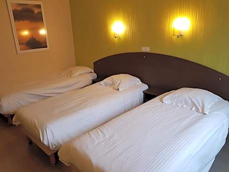 This hotel is located in the countryside of Normandy and offers free Wi-Fi Flat-screen TVs with satellite channels are provided in all of the modern guest rooms at Auberge de la Baie. They are all equipped with private bathrooms and hairdryers. A buffet-style breakfast is served every morning. Free parking is available on site and the city of Avranches is 14 mi away. The hotel is a 45-minute drive from the beaches of Saint-Malo and Rennes is reached by car in 1 hour.