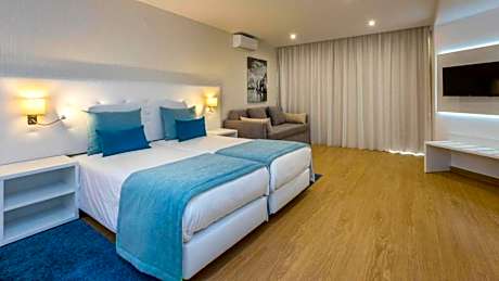 This resort is just a few feet from the Atlantic Ocean and surrounded by the lush Praia dos Aveiros scenery. It has indoor and outdoor pools and a terrace. The air-conditioned rooms at the Auramar Beach Resort are bright and airy. They have a balcony, satellite TV and a minibar. The Panoramic Restaurant serves rich dishes for breakfast and dinner and overlooks the ocean. Beach Resort’s lobby bar serves a range of refreshing drinks and cocktails. Drinks can also be enjoyed on the spacious terrace, which has Atlantic Ocean views. After a day at the beach, guests of the Auramar can relax in the hot tub. For children, there is a kids’ club which offers a range of fun activities. The Auramar Resort is just over a quarter mile from Albufeira’s nightlife and a 10-minute drive from Albufeira’s city center. Free parking is available on site.