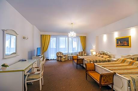 Picturesquely located on the shore of Miorita Lake, in the mountain resort Poiana Brasov, the 4-star Aurelius Imparatul Romanilor Hotel & SPA hotel offers stylish accommodations. Free WiFi is offered. The well-appointed rooms are very spacious and bright. They are decorated with luxurious, classic furniture and with attention to details. Guests are offered free access to an array of facilities, including the indoor swimming pool, the sauna, the hot tub and the fitness area. During the winter season, the property offers ski storage during your stay. For your relaxation, massages are available for a surcharge. The restaurant is directly located at the lakefront, serving international or local dishes for up to 170 guests. It can also be used for conferences, shows or any other kind of events. The Old Town of Brașov is at 3.7 mi from Aurelius Imparatul Romanilor Hotel & SPA hotel. The nearest airport is in Otopeni, 91 mi away, and airport transfers can be arranged for a surcharge. Free private parking is available on site.
