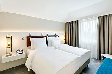 Austria Trend Hotel Bosei Wien is located on the southern edge of Vienna, next to the Wienerberg business and recreation area and a 9-hole golf course. The rooms offer views of the golf course and the southern skyline of Vienna's Business Park. The Bosei Wien Hotel's à-la-carte restaurant serves Austrian cuisine and international classics in addition to Austrian classics and a glass of wine can be savored at the cozy bar (open from 11:00-1.00). The city center can be easily reached within 25 minutes by the Badner Bahn Tram (the station is 1312 feet away). The Tscherttegasse Underground Station (line U6) is a 15-minute walk away. The A23 motorway exit is 0.6 mi away, connecting Austria Trend Hotel Bosei Wien with Vienna International Airport. One of the biggest shopping malls of Europe, the Shopping City Süd, is a 15-minute drive away.