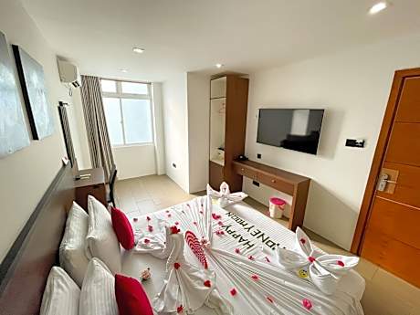 Awesome Suite provides flawless service and all the necessary facilities for visitors. Remain linked during your visit by utilizing the complimentary internet access available. Prior to your check-in date, you can arrange airport transportation services, guaranteeing a seamless and efficient experience for both arrival and departure.Services offered by taxi, car hire and shuttle at the hotel ensure effortless exploration of Male City and Airport. Effortlessly plan your daily activities and travel requirements with express check-in or check-out, luggage storage and safety deposit boxes provided by the front desk services.Securing passes to the city's top attractions is simple with the hotel's ticket service and tours.During your stay at this fantastic hotel, experience comfort and warmth from the delightful on-site fireplace on those chilly days and nights. Repeatedly enjoy your best-loved attire with the aid of the laundry service available at Awesome Suite.During leisurely days and evenings, in-room amenities such as 24-hour room service, room service and daily housekeeping enable you to maximize your stay in the room.The hotel is completely smoke-free.In limited designated zones, smoking is exclusively permitted. Crafted for coziness, every guestroom provides an array of features, guaranteeing a tranquil night's sleep while maintaining the level of comfort.For a more enjoyable stay, select rooms at hotel are equipped with linen service, blackout curtains and air conditioning.For certain chosen rooms, guests can enjoy in-room amusement like television and in-room video streaming as a part of their stay.Rest assured that your hydration needs will be met, as some guestrooms are equipped with a coffee or tea maker, bottled water, instant coffee, instant tea and mini bar.It is worth noting that certain guest bathrooms feature a hair dryer and toiletries for your convenience. Begin your day on a delightful note with a scrumptious complimentary breakfast, consistently served at Awesome Suite.During your visit, indulge in a range of delightful culinary choices at hotel to enhance your experience. Concerned about your dining preferences? Fret not! Awesome Suite offers an assortment of culinary varieties featuring halal choices, catering to all tastes.Experience unparalleled comfort as groceries can be brought right to your room at Awesome Suite through their distinctive delivery assistance. Do you possess exceptional culinary skills? Prepare your meals personally within the hotel at its BBQ facilities.During your stay at hotel, an array of engaging activities and amenities guarantees a delightful experience. During your time at Awesome Suite, you'll be delighted by the unique privilege of accessing the secluded beach.