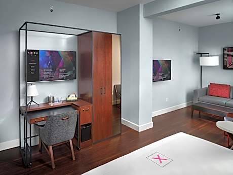 Sensor locks and online check-in make staying at the Axiom Hotel a technology forward experience. Lounge areas , Century-old architecture fuses with an electric modern design in this boutique hotel. A 48-inch Samsung flat-screen Smart TV with wireless streaming capabilities is featured in each room. A Kube Bluetooth clock radio and an electronic laptop safe are provided for convenience. Premium linens, signature Axiom robes and LATHER brand toiletries are also provided. The entire property includes fiber optic free WiFi, including the lounge common areas and guest rooms. A 24-hour reception is available to assist guests. Shopping and dining opportunities in San Francisco’s Union Square are just 984 feet from Axiom Hotel. The Dragon’s Gate entrance to Chinatown is 0.6 mi away. The Coit Tower and North Beach are 1.9 mi away from this hotel.
