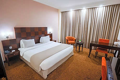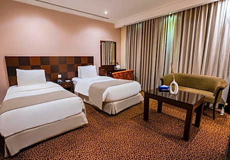 Find your comfort at Ayass Hotel, your 4-star boutique sanctuary. Settle into one of our 92 stylish rooms, each a personal retreat with modern touches. For extra space, upgrade to a spacious suite featuring a separate living room. Host unforgettable events in our impeccably designed meeting rooms and ballrooms. Start your day with a delicious breakfast feast on our sunny terrace, complete with fresh pastries and a made-to-order omelet station. Lunch and dinner await in our main restaurant, where mouthwatering meals make your stay both comfortable and delightful. Ayass Hotel is conveniently located in the capital of Jordan, Amman, just 2.2 miles from Mecca Mall and City Mall, two of the biggest landmarks in Central Amman. It's also a 50-minute drive from Queen Alia International Airport. The hotel offers a variety of wellness and leisure facilities: • A fully equipped fitness center with a heated indoor pool and hot tub, offering both mixed-gender and women-only hours. • Hairdressing and styling services Other amenities include: • Business center • Starbucks coffee shop • Souvenir shop • Transportation and car rental service Free Wi-Fi is available throughout the property.