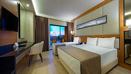 Aydinbey Queen's Palace & Spa - Ultra All Inclusive has a garden, private beach area, a terrace and restaurant in Belek. This 5-star hotel offers room service, a 24-hour front desk and free WiFi. The hotel features an outdoor swimming pool, fitness center, nightclub and a kids' club. The hotel will provide guests with air-conditioned rooms with a desk, an electric tea pot, a minibar, a safety deposit box, a flat-screen TV, a balcony and a private bathroom with a shower. Guest rooms include a closet. The breakfast offers buffet, vegetarian or vegan options. Aydinbey Queen's Palace & Spa - Ultra All Inclusive offers a range of wellness facilities including a sauna and a hammam. You can play table tennis and darts at the accommodation, and car rental is available. The Land of Legends Theme Park is a 16-minute walk from Aydinbey Queen's Palace & Spa - Ultra All Inclusive, while Aspendos Amphitheatre is 14 miles away. Antalya Airport is 13 miles from the property.