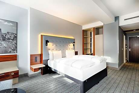 This unique hotel is located in a building with six floors which was once Europe’s tallest building. The Premier Inn Köln City Mediapark offers spacious rooms. Located on the upper parking floors of the Saturn parking garage with direct access to the hotel. Please note that there is no step-free access from the parking deck to the hotel. Wheelchair users are kindly asked to use the disabled parking space on the ground floor of the car park and enter the hotel via the main entrance. Set in the historic Hansahochhaus high-rise building from 1925, the Premier Inn Köln City Mediapark features many original style elements. The bright rooms include modern furnishings, satellite TV, air conditioning, a desk and private bathroom. The hotel offers great public transport connections by S-Bahn (suburban train) and U-Bahn (underground). It is 1 stop from Cologne Cathedral and Cologne Main Station, and also offers direct links to Cologne/Bonn Airport. Guests enjoy free WiFi.