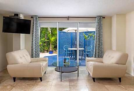 Located along Blackwater Sound, this boutique hotel features a small, private beach nestled in a tropical garden. A microwave, refrigerator and coffee-making facilities come standard in each room at Azul del Mar. A seating area with a satellite TV is also included. A small dishwasher is provided. Rooms are nonsmoking at Azul del Mar, and gas barbecue facilities are available in the picnic area. John Pennekamp State Park entrance is just 1.8 miles from Azul del Mar. Guest can swim with dolphins at Dolphin Cove 3 minutes’ drive from the hotel.
