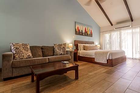 Nestled on the sunny shores of Potrero Bay, on Costa Rica's North Pacific Golden Coast, this unique boutique hotel offers a tranquil escape just steps from the beach. Guests can enjoy spectacular sunsets and wander through artistic gardens shaded by centennial trees. The hotel features 35 rooms, ranging from standard accommodations to a beachfront honeymoon suite, all equipped with air conditioning, cable TV, international telephone access, and hot water. Suites also include fully equipped kitchens, dining areas, and living rooms. The on-site restaurant specializes in seafood and international cuisine, showcasing both traditional Costa Rican dishes and sophisticated global fare. The wide, tropical expanse of Bahía Del Sol provides opportunities for leisurely walks, invigorating jogs, scenic bike rides, or simply relaxing in the sun. Personalized service ensures a memorable stay at this pristine beachfront hotel.
