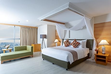 Baiyoke Sky Hotel provides flawless service and all the necessary facilities for visitors. Remain linked during your visit by utilizing the complimentary internet access available.Prior to your check-in date, you can arrange airport transportation services, guaranteeing a seamless and efficient experience for both arrival and departure. Services offered by taxi, car hire and shuttle at the hotel ensure effortless exploration of Bangkok. The hotel offers complimentary parking for guests who arrive with their own mode of transport. Effortlessly plan your daily activities and travel requirements with concierge service, luggage storage and safety deposit boxes provided by the front desk services. Securing top-notch tickets and reserving prime dining spots become effortless through assistance from the hotel's tours. For extended visits or whenever required, the dry cleaning service and laundry service ensures your preferred travel garments remain clean and accessible.During leisurely days and evenings, in-room amenities such as 24-hour room service, room service and daily housekeeping enable you to maximize your stay in the room.For minor or impromptu requirements, the convenience stores can promptly cater to them without the necessity of stepping out from the hotel.In limited designated zones, smoking is exclusively permitted. Crafted for coziness, every guestroom provides an array of features, guaranteeing a tranquil night's sleep while maintaining the level of comfort. For a more enjoyable stay, select rooms at hotel are equipped with linen service, blackout curtains and air conditioning. For certain chosen rooms, guests can enjoy in-room amusement like television and cable TV as a part of their stay. Rest assured that your hydration needs will be met, as some guestrooms are equipped with a refrigerator, a coffee or tea maker, bottled water, instant coffee and mini bar.It is worth noting that certain guest bathrooms feature a hair dryer, toiletries, bathrobes and towels for your convenience. Each morning at Baiyoke Sky Hotel, a scrumptious, homemade breakfast kick-starts the day.Begin your holiday mornings right with your essential cup of coffee, offered daily at the cafe on-site. During your visit, indulge in a range of delightful culinary choices at hotel to enhance your experience.Experience a fantastic evening effortlessly! Relish an entertaining night without venturing beyond the confines of the bar.Snack vending machines operate around the clock, providing you with easy access to treats regardless of the hour.Do you possess exceptional culinary skills? Prepare your meals personally within the hotel at its shared kitchen.During your stay at hotel, an array of engaging activities and amenities guarantees a delightful experience.Treat and spoil yourself by stopping at massage, steam room, spa and sauna for a memorable experience.Begin your holiday perfectly by taking a plunge into the swimming pool. Eliminate those holiday calories by stopping by hotel and making use of their well-equipped exercise amenities.