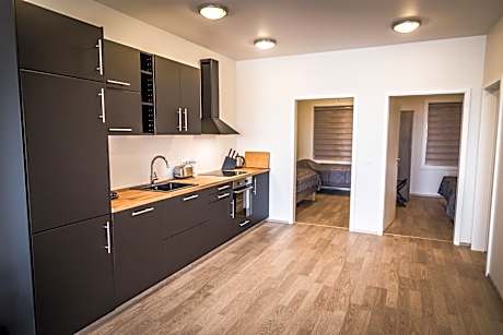 The dormitory room features a dining area, a sofa, as well as a shared bathroom boasting a walk-in shower and a hairdryer. In the kitchen, guests will find a stovetop, a refrigerator, a dishwasher and kitchenware. This dormitory room has a tea and coffee maker, a seating area, flat-screen TV with streaming services, as well as wine/champagne for guests. The unit has 12 beds.