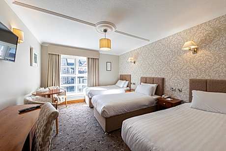The Ballina Manor Hotel is centrally located in the heart of town while perched on the banks of the world famous River Moy and overlooking St Muredach's Cathedral. It is a 1-minute stroll from the hotel to the town center. The spacious rooms at the Ballina Manor Hotel have private bathrooms with showers, baths, hairdryers, tea/coffee making facilities & free Wi-Fi. The Manor Hotel offers fine dining in the Ridgepool Restaurant which has floor-to-ceiling windows and offers panoramic views of the surrounding area. There is an international menu with fresh fish specials. Limited free car parking is available onsite at the hotel. Ireland West Airport Knock is a 40-minute drive away and there is a bus and train station a 7-minute walk from the property.