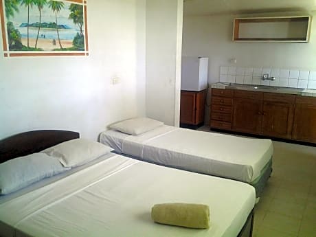 This bed in dormitory has air conditioning and tile/marble floor.