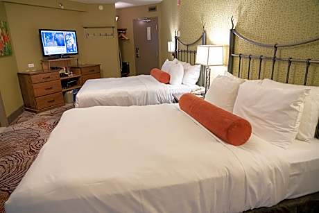 - Rooms and suites equipped with flat-screen TVs, mini-fridges, and in-room safes