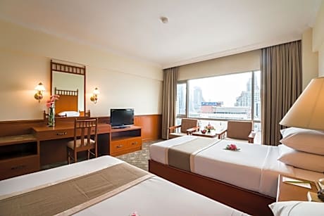 Bangkok Palace Hotel offers top-notch services and amenities, ensuring guests experience utmost comfort. Maintain seamless communication using the complimentary Wi-Fi at hotel.Discovering Bangkok becomes even more accessible through the taxi and car hire amenities provided at the hotel. For visitors traveling by automobile, complimentary parking is available. During your stay at this fantastic hotel, the attentive front desk personnel can provide you with a range of amenities such as concierge service, express check-in or check-out, luggage storage and safety deposit boxes.In search of city's top entertainment, seek assistance at the hotel's ticket service and tours for reservations. At the hotel, utilize the on-site dry cleaning service and laundry service to maintain your beloved travel attire fresh, allowing you to bring fewer clothes. Craving relaxation? Make the most of your stay at the Bangkok Palace Hotel with convenient amenities like 24-hour room service, room service and daily housekeeping at your disposal. For all your minor, last-minute requirements, the convenience stores can promptly cater to them, eliminating the need to venture out.For visitors wishing to smoke, designated smoking zones can be found.At Bangkok Palace Hotel, every guestroom is provided with convenient amenities and fittings to ensure a comfortable stay.Enhance your experience at hotel with the knowledge that certain rooms are equipped with linen service, blackout curtains and air conditioning for your convenience.A few accommodations within Bangkok Palace Hotel offer unique design elements such as a separate living room. Certain rooms boast in-room amusement features such as television and cable TV, offering guests an enjoyable stay.In select rooms within the hotel, a refrigerator, a coffee or tea maker, bottled water, instant coffee, instant tea and mini bar is available to cater to your requirements when desired. In the hotel, certain guest bathrooms come equipped with essential bathroom amenities, such as a hair dryer, toiletries, bathrobes and towels, ensuring a comfortable stay for guests. Begin your day with a scrumptious on-site breakfast available each morning at Bangkok Palace Hotel. Begin your day feeling refreshed and invigorated as you enjoy a delightful cup of quality coffee available at the cafe situated within the hotel. At the hotel, an assortment of easily accessible and delicious meal choices are available to satisfy your appetite whenever it strikes.Bangkok Palace Hotel provides a superb assortment of leisure amenities for guests to enjoy.Conclude your holiday perfectly with a visit to spa and sauna on your final days. Be sure to drop by the pool at hotel at least once during your stay.At Bangkok Palace Hotel, utmost care is taken to ensure guests' comfort. Relish your preferred beverage in your swimwear by the hotel's poolside bar.Discover the fitness amenities at hotel to maintain your health and strength during your getaway.