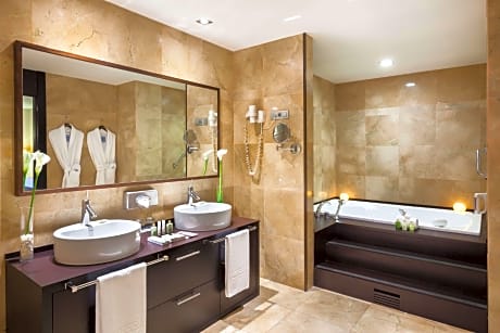 This spacious, air-conditioned room features parquet floors and elegant décor. It includes a sofa bed, satellite TV, a mini-bar and a free safe. The private bathroom has a bath or shower and a hairdryer.