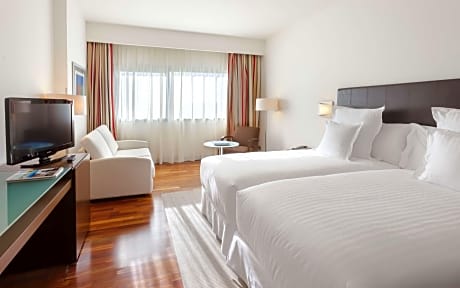 Occidental Aranjuez (formerly Barceló Aranjuez) is located 28 mi from Madrid city center. It offers a large wellness center, 6 paddle tennis courts and an outdoor swimming pool. Rooms at the Occidental Aranjuez Hotel are air-conditioned and feature parquet floors and elegant decor. They are equipped with satellite TV, ironing facilities and hairdryer. The restaurant serves a buffet breakfast and à la carte meals. You can also enjoy drinks and snacks in the lobby bar or on the outdoor terrace. The Hotel Occidental Aranjuez is located in a privileged setting between Madrid and Puy du Fou, with a strategic location so that you can enjoy the tranquility of Aranjuez and at the same time be close to the attractions of the Spanish capital and the theme park. The hotel's extensive spa features a large thermal pool, a Dead Sea pool, Turkish baths, Finnish sauna and contrast showers, among other facilities. Massages are also available. Occidental Aranjuez has a quiet and natural setting, with views of large fields and nature. There are pleasant paths to reach the center of Aranjuez. The Arrozante Restaurant is already a reality, a culinary space set in the Mediterranean Sea through the colors, materials and shapes used in its decoration, and whose menu will delight lovers of rice in all its forms. If you want to know more or book a specific date contact this phone 918 09 93 99.