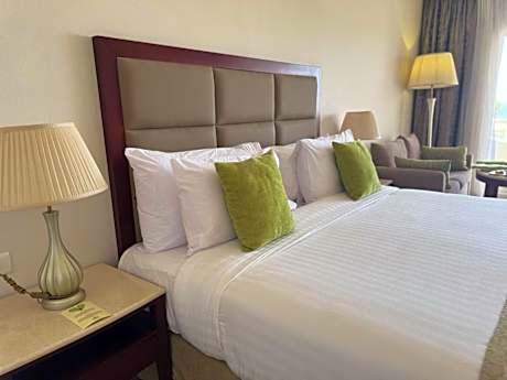 This stylish, elegant and prestigious 5-star Sharm El Sheikh resort is located on 1969 ft of gorgeous private silky white sandy beach. It offers a lagoon-style pool and a 476 ft snorkeling and scuba diving platform. It has 9 restaurants and bars. It also offers a large sandy beach, Olympic-size sweet water swimming pool (heated in winter); only for adults partially–covered seawater whirlpool with jets and a kid's pool. The property offers a free shuttle bus once a day in the evening to Soho Square. A pillow menu, satellite TV, and 100% Egyptian cotton bedding are offered in Baron Resort’s rooms. Each has floor-to-ceiling windows and a furnished balcony. Some have views of the Red Sea, Tiran Island or the resort gardens. Baron Resort’s 9 dining and drinking options include beachfront Taj Mahal, which serves Indian specialties. Now & Zen Dance bar offers exotic cocktails and evening music. Restaurant theme nights vary and include traditional Bedouin dinners. Live entertainment is available at Al Sakia Seafood Restaurant and Oasis Pool Restaurant & Bar. Algae wraps and Egyptian massages are offered at Baron Resort’s Health Club & Relaxation. Gym and steam rooms are also available. Other activities available at the resort are beach volleyball, jogging and cycling track. It also offers a supervised kids club with a sleeping area. The 24-hour staff can organize excursions to Ras Mohammed National Park which is 1.5 hours away by boat. Baron Resort Sharm El Sheikh is 1.9 mi from Soho Square, and Naama Bay is 9.3 mi away. Sharm El Sheikh International Airport is 5 mi away.