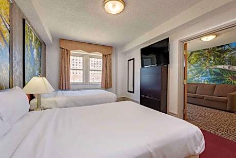 This suite includes a flat-screen cable TV and coffee machine.