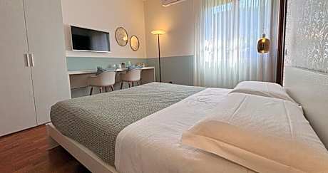 Furnished with parquet floors and a contemporary style, this modern room has garden views. The private bathroom comes with a shower and hairdryer.