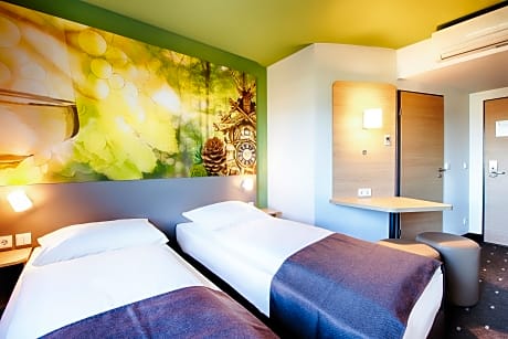 This modern hotel offers affordable accommodations next to the main terminal of the Baden Airpark airport, less than 11 mi away from the Black Forest and Baden-Baden town center. The B&B HOTEL Baden-Airpark’s soundproofed rooms feature air conditioning, Premiere (satellite) TV channels and free Wi-Fi internet access. Larger family rooms are also available for groups of up to 4 people. A takeaway breakfast is available daily at the hotel. The B&B HOTEL Baden-Airpark is an ideal base for guests who enjoy recreational activities. An 18-hole golf course and many scenic cycling routes can be found nearby. Drivers will benefit from excellent connections with the A5 motorway.