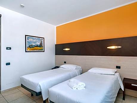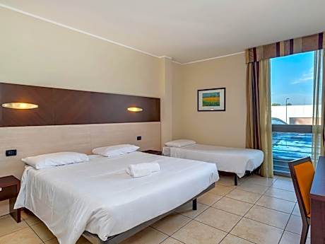 Hotel Record is a modern establishment set in the new business district of Settimo Torinese, just outside Turin and a few yards from the A4 motorway exit. Take advantage of the free car park and free internet. Your room at the B&B HOTEL Settimo Torinese has a contemporary design and includes free internet connection. All air conditioned, rooms come with a flat-screen TV with satellite and pay-per-view channels, and a mini-bar. The bathroom is fitted with a shower, with a hairdryer and free toiletries provided. Suites offer a spa bath. The hotel features a fully equipped conference center with a maximum capacity of 180. Start your day with a buffet breakfast. At dinner, you can enjoy an à la carte service at the elegant restaurant. For your relax, you can enjoy the on-site fitness facilities and the sun terrace equipped with a hot tub. License Number(s): 001265-ALB-00001, IT