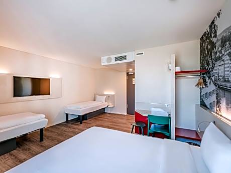 B&B HOTEL Zürich Airport offers accommodations in Rümlang. Featuring a bar, the 3-star hotel has air-conditioned rooms with free WiFi, each with a private bathroom. The accommodations features a 24-hour front desk, a shared lounge and currency exchange for guests. At the hotel, every room comes with a wardrobe. At B&B HOTEL Zürich Airport the rooms have a desk and a flat-screen TV. Guests at the accommodations can enjoy a continental breakfast. Zürich is 8.7 mi from B&B HOTEL Zürich Airport, while Winterthur is 17 mi from the property. The nearest airport is Zurich, 3.7 mi from the hotel.