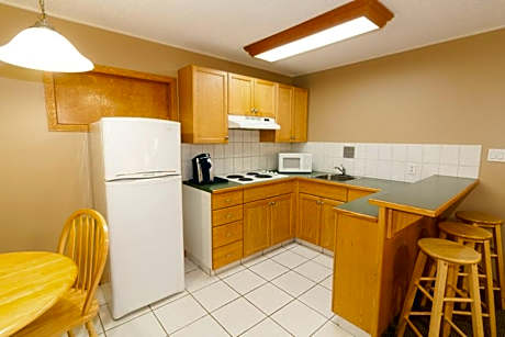 This room features two double beds, a Keurig coffee machine, stove top, refrigerator, microwave, and kitchenware. A HD TV with movie channels, dedicated internet connection and air-conditioning.