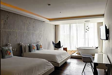 This upscale Playa del Carmen hotel features a gourmet restaurant and rooftop lounge with infinity pool. It is located in the center of Riviera Maya and near shopping on Fifth Avenue. Each suite at Be Playa Hotel Boutique & Rooftop Bar is decorated in modern designs with clean white walls, white marble and hardwood floors. A flat-screen TV, free Wi-Fi and provided. Playa del Carmen Be Playa Hotel Boutique & Rooftop Bar’s restaurant, Sushi Club, serves gourmet sushi and Asian cuisine. Guests can also enjoy live music at the luxury restaurant. The pool lounge offers signature cocktails. Be Playa Hotel Boutique & Rooftop Bar – Playa del Carmen has a tour desk that can assist with a variety of activities.