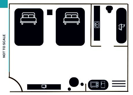 - Acrylic shield between guests and staff in main contact areas