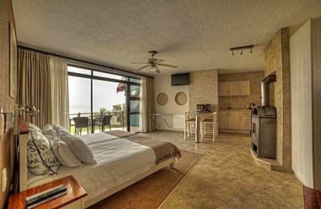 The uniquely designed Beach Lodge is located in Swakopmund and features a restaurant, bar and BBQ facilities. The hotel has a garden and offers uninterrupted views of the Atlantic Ocean. The elegant rooms are decorated in natural colors and feature large windows and a unique oval shaped ship’s cabin window. Each unit features a seating area, flat-screen satellite TV and a patio or balcony offering views of the sea and garden. Extras include a desk, laptop safe and tea-and-coffee-making facilities. At Beach Lodge the signature restaurant, “The Wreck” is located on the 2nd floor and offers a variety of dishes and overlooks the ocean. The tour desk can assist guests with arranging excursions or an airport shuttle upon request. This beachfront hotel is located 34 miles from the Walvis Bay Airport.
