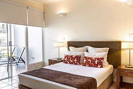 Set alongside Four Mile Beach, this property features spacious apartments with a spa bath and a private balcony offering sea and pool views. Beaches Holiday Apartments - Official Onsite Reception & Check In is 5 minutes' walk from from the center of Port Douglas. It features a palm-fringed infinity pool and free WiFi. Beaches Apartments are 10 minutes' walk from The Marina Mirage shopping center and restaurants along Macrossan Street. The Great Barrier Reef is 16 mi away. The air-conditioned, self-contained apartments have a laundry and a fully equipped kitchen with a dishwasher and microwave. Each apartment has both indoor and outdoor dining areas and a lounge area offering a flat-screen TV, with cable channels and a DVD player. Guests can enjoy a meal in the barbecue area, or relax in the hot tub. The tour desk can arrange trips to Daintree National Park and Mossman Gorge. Free covered parking is available on site. Massage services are also available. Located within the property is a cafe, which is open for breakfast and lunch daily.