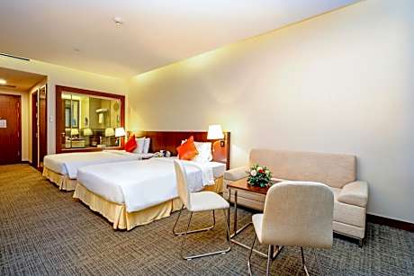 At Becamex Hotel New City, exceptional service and top-notch amenities create a memorable experience for guests.Complimentary internet access is available in the hotel to ensure you stay connected during your visit. Arrange your trips to and from the airport using the hotel's convenient transportation services booking.Discover the wonders of Bình Dương with ease by utilizing the services provided by taxi and shuttle.Complimentary parking is available for guests.Continuously receive the support you require through front desk amenities such as concierge service, express check-in or check-out, luggage storage and safety deposit boxes. Always look your best in your preferred attire with the dry cleaning service and laundry service provided at Becamex Hotel New City. Craving relaxation? In-room amenities such as 24-hour room service and room service allow you to maximize your time spent inside the room. Additionally, you can obtain minor travel essentials and miscellaneous items at the convenience stores without departing from the Becamex Hotel New City.For the health and well-being of all guests and staff, smoking is restricted exclusively to assigned zones. Accommodations come equipped with all the conveniences required for a restful night's slumber. A selection of rooms feature linen service, blackout curtains and air conditioning to ensure your comfort and convenience.A few accommodations in Becamex Hotel New City incorporate separate living room and balcony or terrace into their architectural arrangement.A few chosen rooms are equipped with television and cable TV to ensure guest amusement. In certain rooms, the hotel offers visitors access to a refrigerator, bottled water, instant coffee, instant tea and mini bar. Becamex Hotel New City offers a hair dryer, toiletries and bathrobes in the restrooms of specific accommodations. At Becamex Hotel New City, each day commences with a scrumptious breakfast offered at no additional cost. All adore a delightful cup of coffee! An on-site coffee shop ensures you can relish a cup of authentic, freshly-brewed coffee every morning -- or whenever you desire it. Allow your journey to be free from the pangs of hunger! On-site eateries offer delicious and accessible meal choices. At Becamex Hotel New City, guests can take pleasure in the delightful recreational amenities provided for their entertainment. At Becamex Hotel New City, a wide array of amenities guarantees a fulfilling experience throughout your visit. Make your holiday truly memorable by taking a rejuvenating plunge into the pool.At the hotel fitness center, you have the option to engage in your daily exercise routine or simply alleviate your jet lag by breaking a sweat.