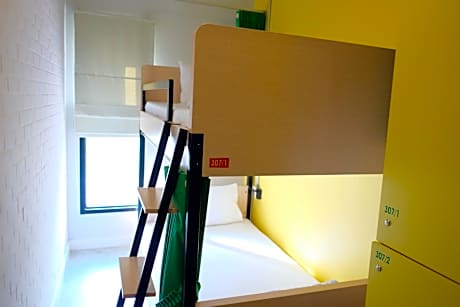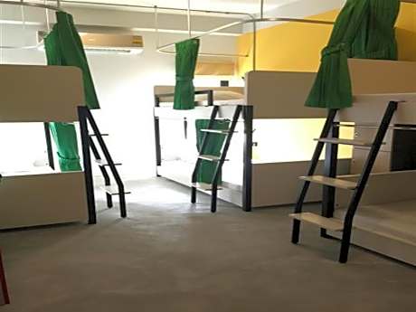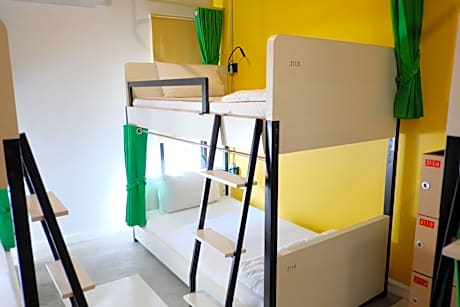 This dormitory room features air conditioning and lockers. Each bed has a privacy curtain and guests have access to a shared bathroom.