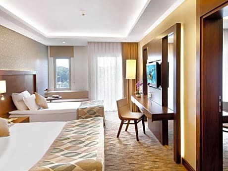 Belconti Resort Hotel - All Inclusive offers top-notch services and amenities, ensuring guests experience utmost comfort. Maintain seamless communication using the complimentary Wi-Fi at hotel. Effortlessly arrange transportation to and from the airport using the hotel's airport transfer services. Discovering Antalya becomes even more accessible, thanks to the shuttle amenities provided at the hotel. Guests can avail parking facilities at the hotel. During your stay at this fantastic hotel, the attentive front desk personnel can provide you with a range of amenities such as concierge service and luggage storage.At the hotel, utilize the on-site dry cleaning service and laundry service to maintain your beloved travel attire fresh, allowing you to bring fewer clothes. Craving relaxation? Make the most of your stay at the Belconti Resort Hotel - All Inclusive with convenient amenities like 24-hour room service and daily housekeeping at your disposal.For all your minor, last-minute requirements, the convenience stores can promptly cater to them, eliminating the need to venture out. Kindly note that smoking is prohibited in the hotel to ensure fresher air for all visitors. For visitors wishing to smoke, designated smoking zones can be found.At Belconti Resort Hotel - All Inclusive, every guestroom is provided with convenient amenities and fittings to ensure a comfortable stay. Enhance your experience at hotel with the knowledge that certain rooms are equipped with linen service and air conditioning for your convenience. A few accommodations within Belconti Resort Hotel - All Inclusive offer unique design elements such as a balcony or terrace.Certain rooms offer in-room amusement features such as the television for your enjoyment.In select rooms within the hotel, a refrigerator and mini bar is available to cater to your requirements when desired.In the hotel, certain guest bathrooms come equipped with essential bathroom amenities, such as a hair dryer and toiletries, ensuring a comfortable stay for guests. Begin your day with a scrumptious on-site breakfast available each morning at Belconti Resort Hotel - All Inclusive. At the hotel, an assortment of easily accessible and delicious meal choices are available to satisfy your appetite whenever it strikes.Create unforgettable moments with your fellow voyagers just steps away, at hotel's bar and nightclub, for a delightful evening together.Belconti Resort Hotel - All Inclusive provides a superb assortment of leisure amenities for guests to enjoy.During your stay, make the most of the unparalleled entry to hotel's secluded shoreline for an unforgettable experience. Conclude your holiday perfectly with a visit to massage, hot tub, salon, steam room, spa and sauna on your final days. Be sure to drop by the pool at hotel at least once during your stay.At Belconti Resort Hotel - All Inclusive, utmost care is taken to ensure guests' comfort. Relish your preferred beverage in your swimwear by the hotel's poolside bar. Discover the fitness amenities at hotel to maintain your health and strength during your getaway.