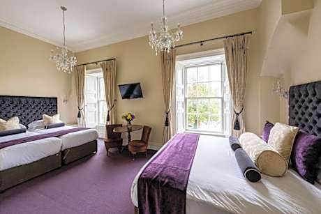 This beautiful and historic castle is set within 1,000 acres of woodland. On the banks of the River Moy, it features a restaurant made from the remains of a 17th-century Spanish galleon. With stunning views of the forest and castle garden, each spacious room is individually decorated with elegant and richly furnishings. Rooms boast 4 poster beds and overhead canopies include a private bathroom with complimentary toiletries, free Wi-Fi, and tea/coffee facilities, plasma-screen TVs. The award winning Library Restaurant serves fresh country house cuisine, with our signature dish 'The Drunken Bullock' steak flambéed at the table on a 15th Century Sword. The Tween Decks provides fantastic, 17th-century nautical decor, and the Armada Bar is built from the salvaged, 400-year old wood of shipwrecked Spanish ships Guests can enjoy the 13th-century Norman fireplace of the Great Hall, or relax in front of the many open fires throughout the castle, with its suits of armor and numerous antiques. There is a large, secure parking area, and Knock Airport can be reached in 35 minutes by car. Lough Conn is 20 minutes’ drive away, and the center of Ballina is just a 5-minute drive away.