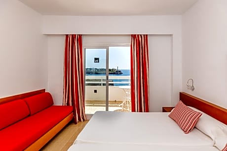 This air-conditioned double room is consisted of of a TV with satellite channels, a private bathroom as well as a balcony with sea views. The unit has 3 beds.