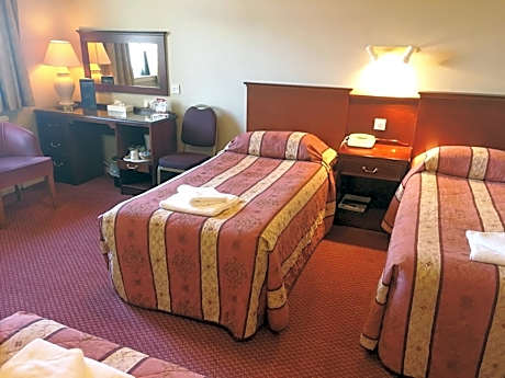 Spacious room with work desk, tea/coffee making facilities and free toiletries.