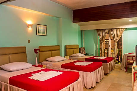 Featuring free toiletries, this triple room includes a private bathroom with a walk-in shower, a bath and a bidet. This wheelchair accessible triple room has soundproof walls, a seating area with a flat-screen TV and a higher level toilet. The unit has 3 beds.