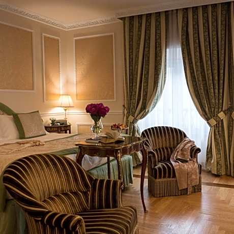 In a 15th-century building, Hotel Bernini Palace is a 5-minute walk from Florence Cathedral and Ponte Vecchio. It features antique furniture and Murano-glass chandeliers. Some rooms are decorated in a classic style. Others feature Renaissance Florence décor with period tapestry and canopy beds. They all come equipped with a satellite flat-screen TV, air conditioning and a minibar. Free Wi-Fi is available throughout the hotel. Guests can enjoy the panoramic views from the terrace, furnished with tables and chairs. The stylish La Chiostrina Restaurant serves national and international dishes. The lounge bar makes excellent cocktails and a buffet breakfast is provided daily. The lobby at Bernini Palace Hotel is decorated with a mix of Italian and Moroccan styles.