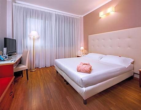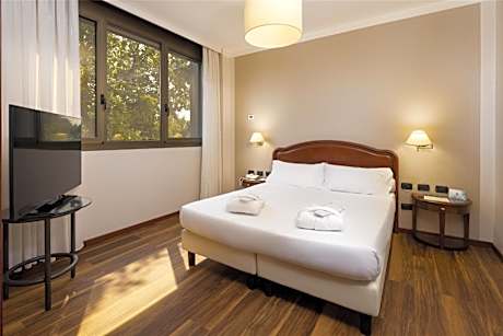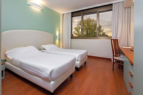This property offers a Special Protection Program, a strict program of precise safeguards dedicated to our guests and our staff. Surrounded by a green park a 2 minute-drive from Linate Airport, Air Hotel MIlano Linate offers a free airport shuttle service from 04.30 to 00:30. It features rooms with a 55” LCD TV and free high-speed WiFi. Rooms at Air Hotel come with parquet floors and classic-style décor. They include a free mini-bar, air conditioning and a bathroom with hairdryer. An American breakfast buffet is served every morning. The Pegasus American Bar & Restaurant serves traditional dishes from different Italian regions. Its glass-walled patio overlooks the garden. Air Hotel Milano Linate is 1.6 mi from the A51 ring road, which provides connection with the A1 and A4 motorways. Milan’s city center is 4.3 mi away.