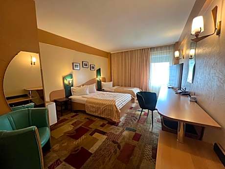 Located in a quiet area, only a 5-minute drive from the historic center of Timisoara and the Northern Train Station, Ambassador Hotel provides functionally-equipped, modern rooms. There is a well-equipped conference room, a fitness studio and a 24-hour bar. Ambassador Hotel has free WiFi internet access in the entire property. Breakfast is provided every day and the In Style hotel restaurant seats up to 120 people, serving refined international cuisine. Receptions, cocktail parties and other events can be organized at the Ambassador. You can park your car for free next to the hotel, and there is also a paid secured parking in the hotel's courtyard.