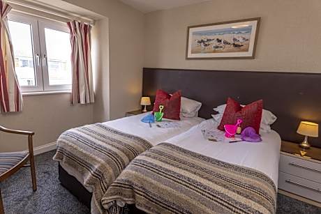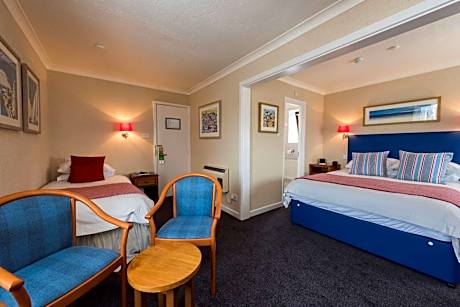 The family room features a tea and coffee maker, a seating area, a balcony with sea views as well as a private bathroom boasting a shower. The unit has 2 beds.